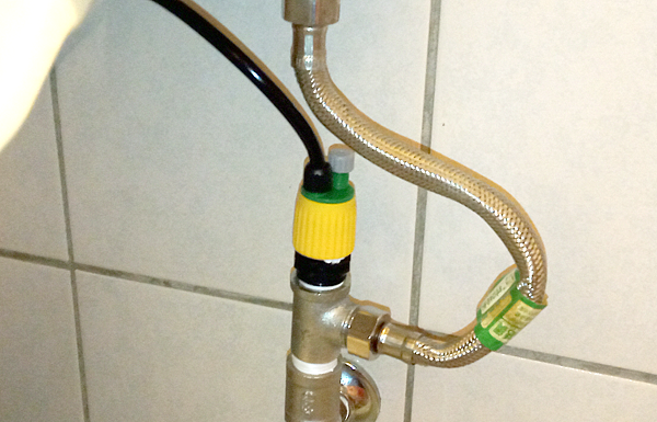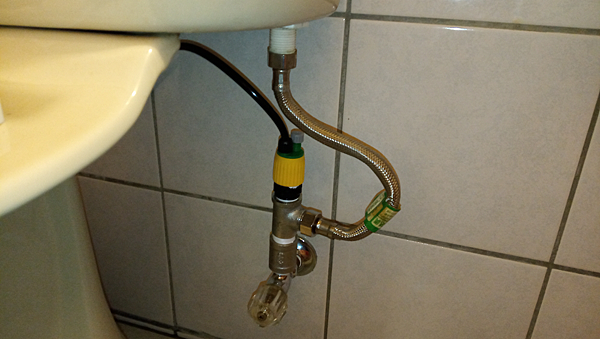 ○ 2021.06.27 起初連接的細橡皮水管,小破洞噴水,導致浴室小淹水,還好是尾段,直接剪掉一段。